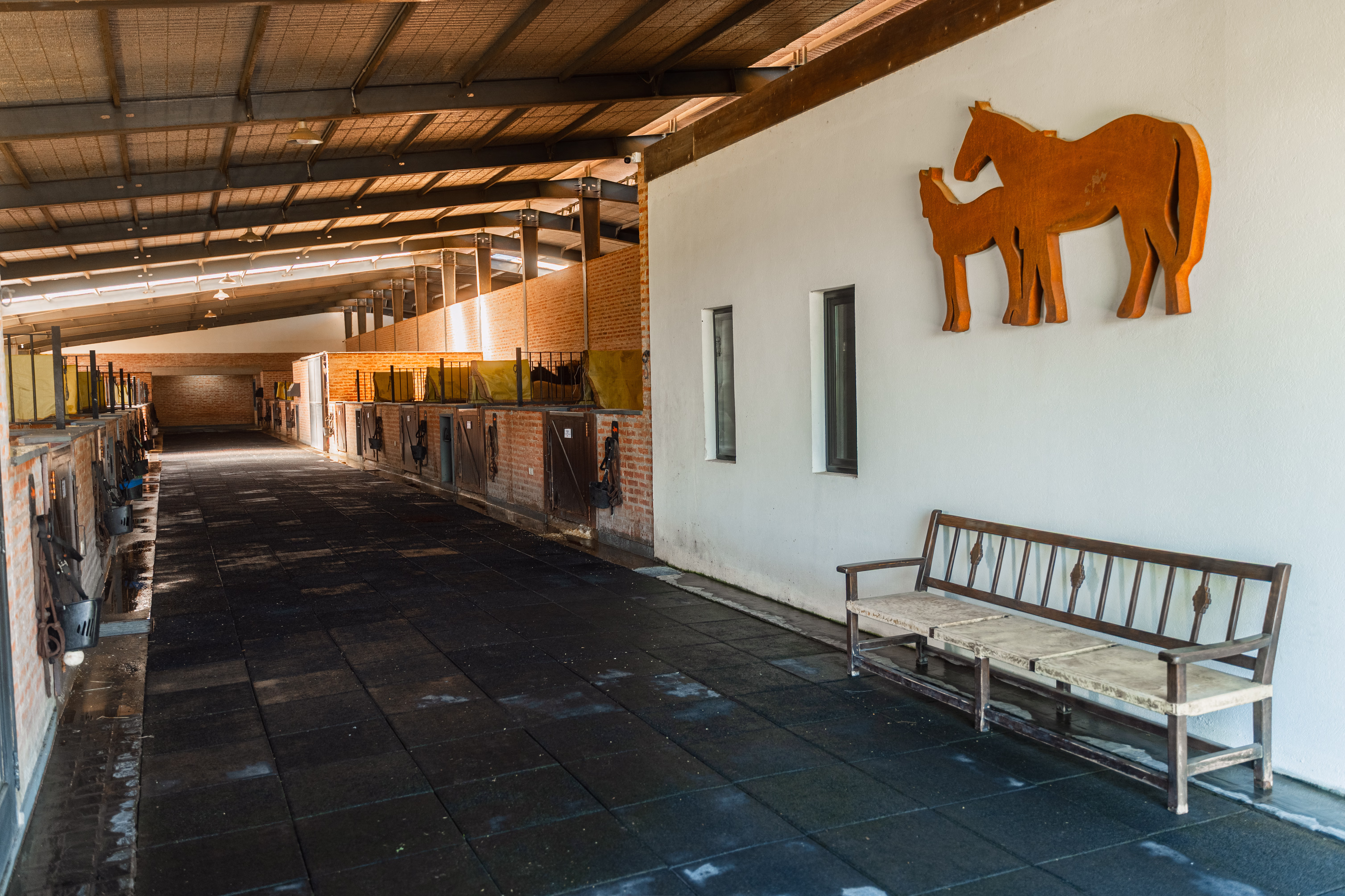 El predio se completa con modernas encaballerizas con 103 boxes, caminador, pista de vareo y amplios piquetes, asegurando un entorno óptimo para el cuidado, entrenamiento y bienestar de cada caballo.